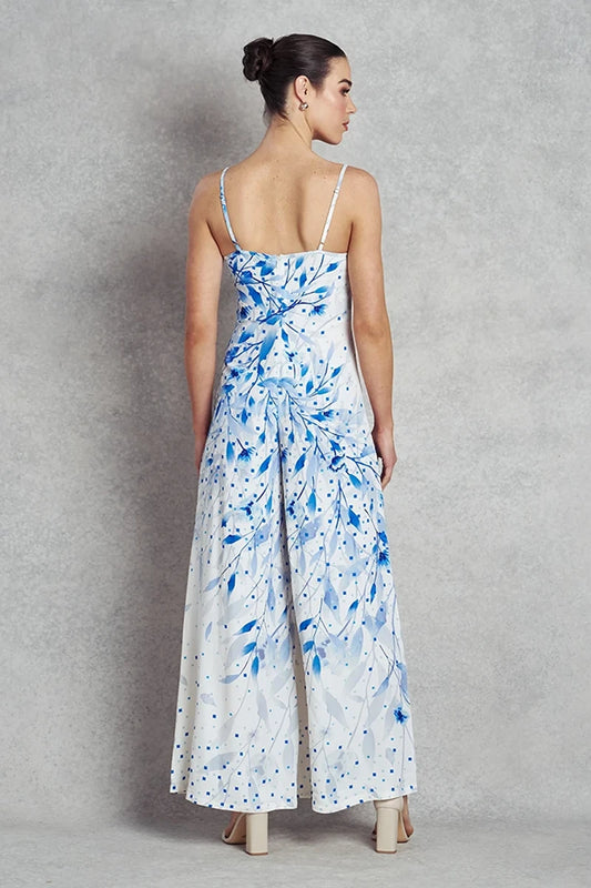 Asteria Jumpsuit | White with Blue Print |