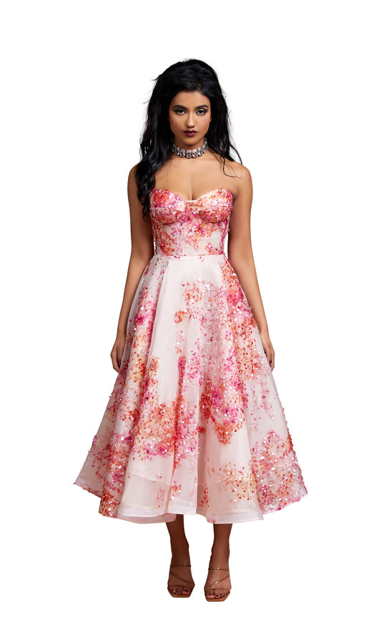 Angelina Cocktail Swing Dress | Nude/Mercury Gold |