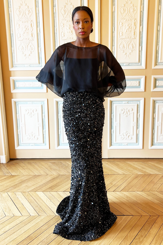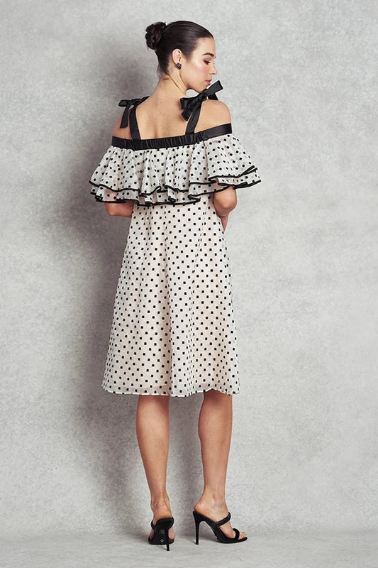 Dancing with you Dress | White Black Polka Square Silk Organza |