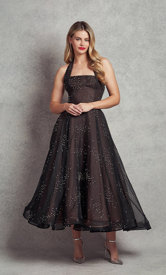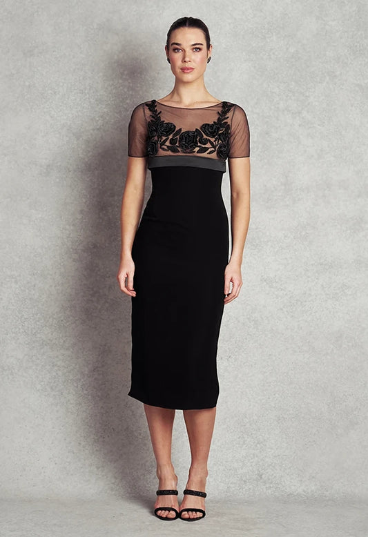 Harriet Cocktail Dress | Black Blue beaded roses |