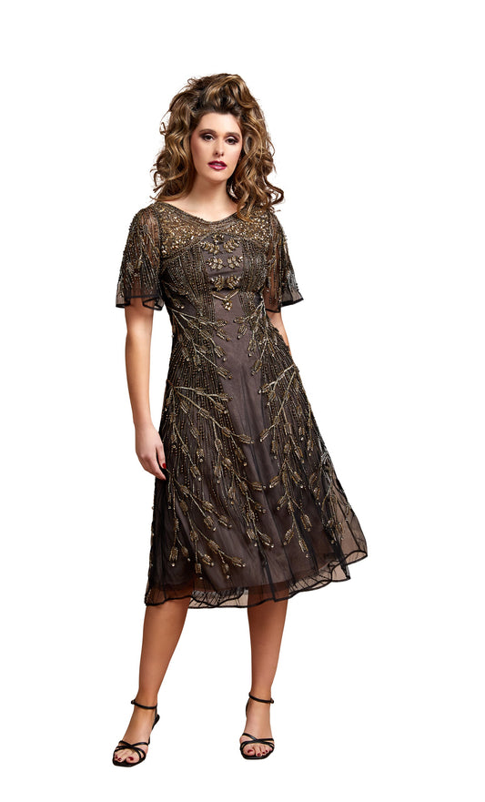 Gatsby Cocktail Bell Sleeves | Brown with Gold embroidery |