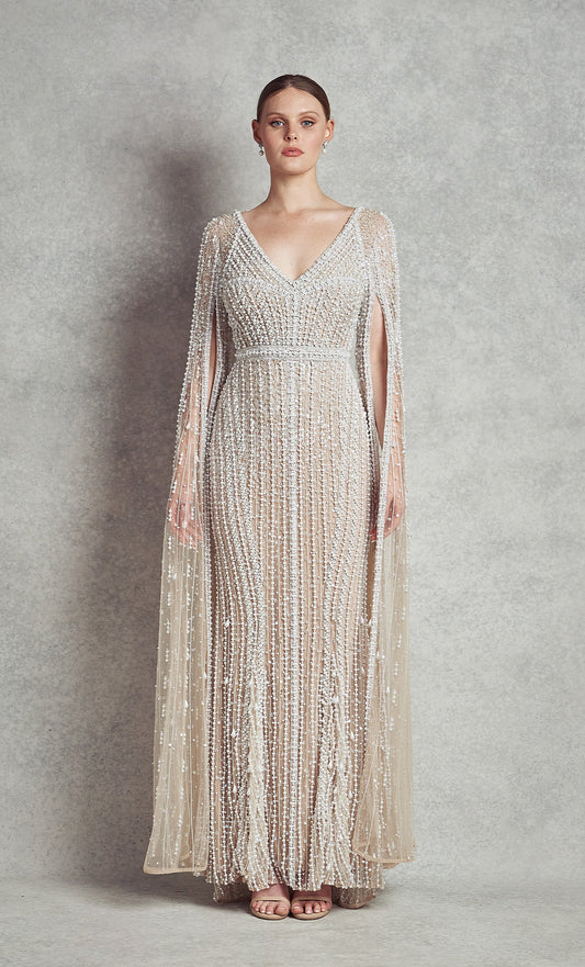 Flower Dream Gown V1 | Nude with Floral beadings |